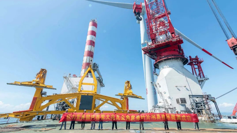 近日,汕頭某海域,巨力索具研發(fā)的國(guó)內(nèi)首臺(tái)50噸大兆瓦全角度旋轉(zhuǎn)式海上單葉片吊具,剛剛面世,便展開連續(xù)作業(yè),順利完成5臺(tái)風(fēng)機(jī)的葉片吊裝,經(jīng)受住了考驗(yàn),完美的展示了巨力吊具的高可靠性、高安全性及高效率。