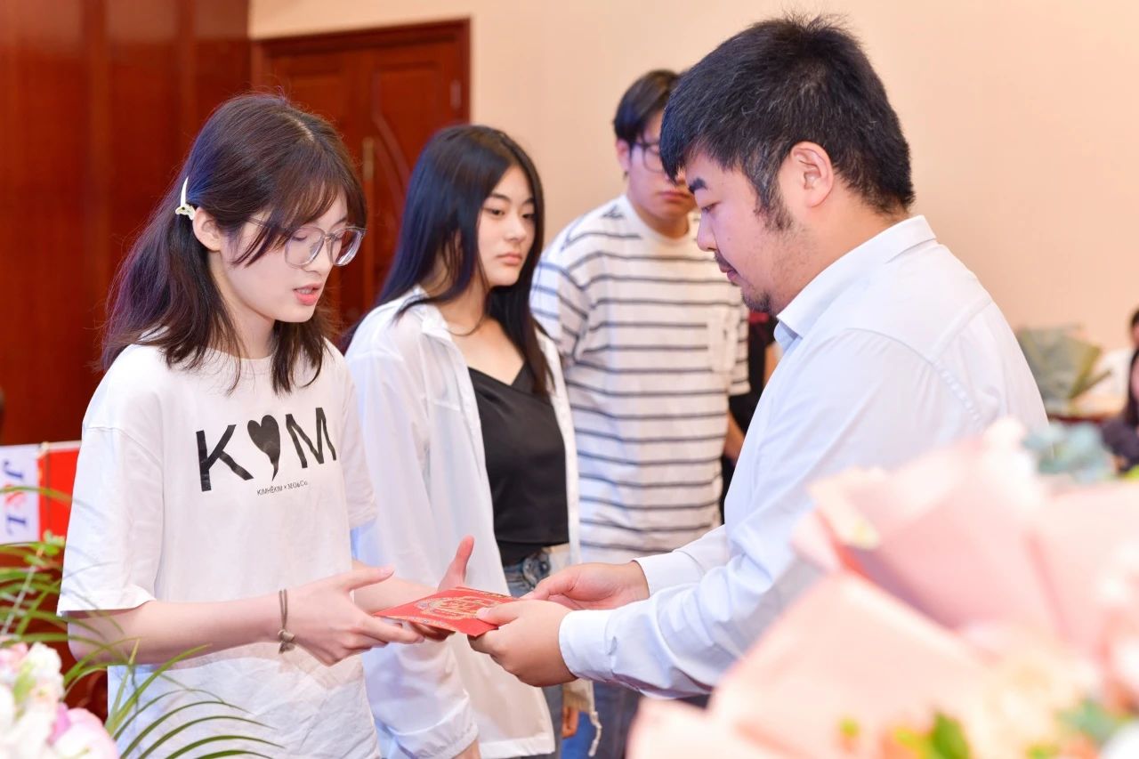 分享會上,楊超向含辛茹苦供子女求學(xué)的職工及家屬表示崇高的敬意,向金榜題名的職工子女表示熱烈的祝賀,他精心的為每位到場的考生準(zhǔn)備了兩份禮物:一本書籍和一份助學(xué)金。表達他對考生的美好祝愿。