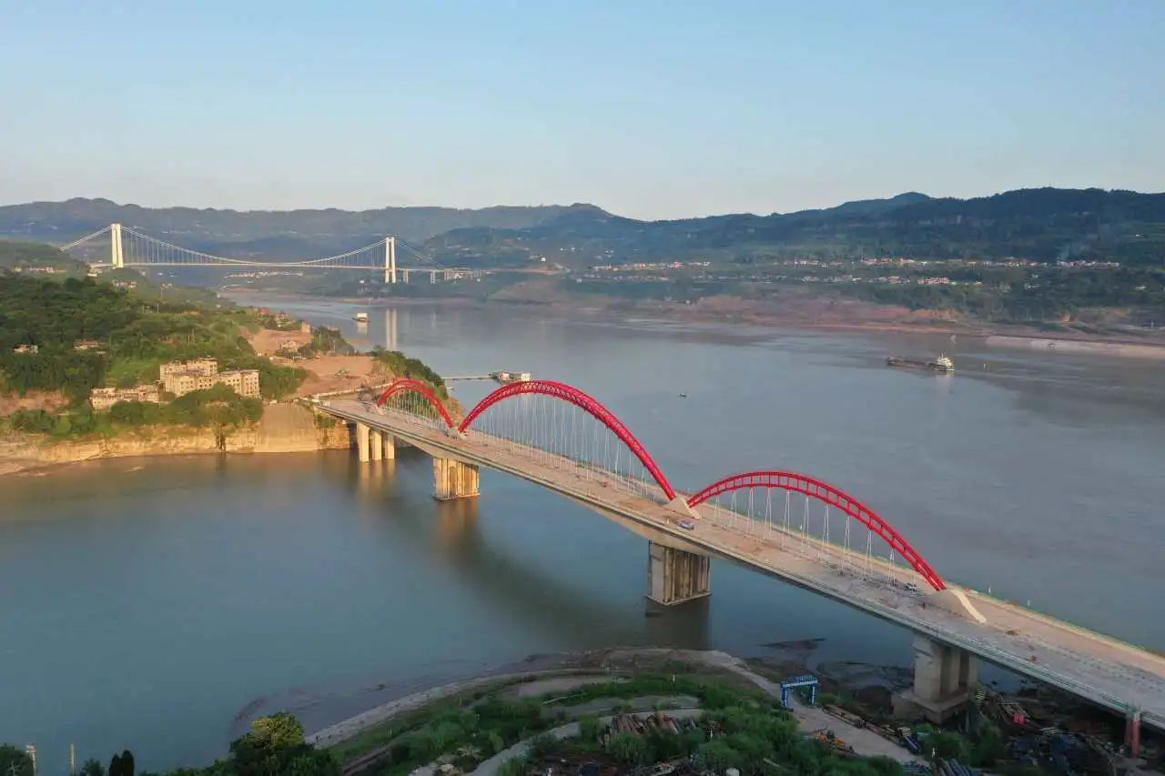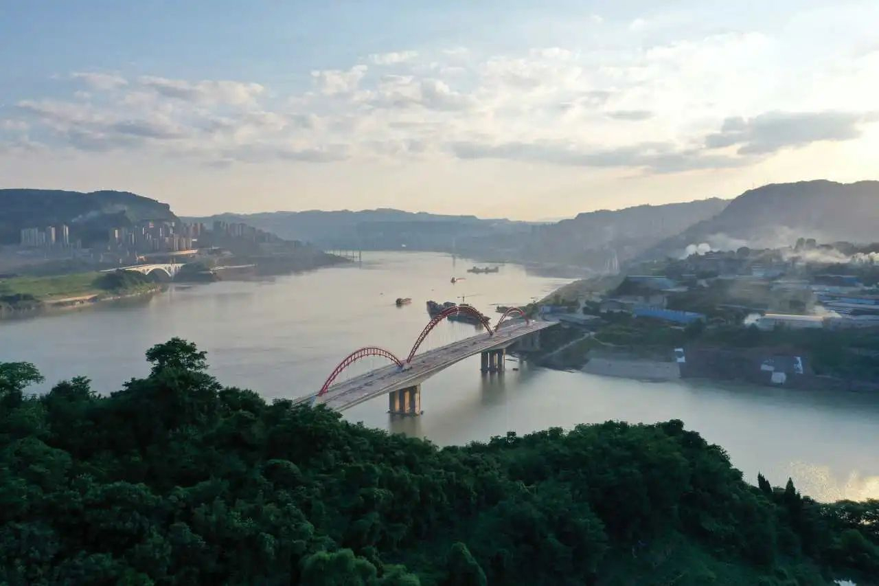 青山綠水之間,一座大橋騰空而起,不僅方便了當(dāng)?shù)厝嗣窠煌ǔ鲂校龠M(jìn)經(jīng)濟(jì)發(fā)展,而且在川渝大地,長(zhǎng)江之側(cè)形成了一道亮麗的風(fēng)景線,兼具美學(xué)和實(shí)用價(jià)值。