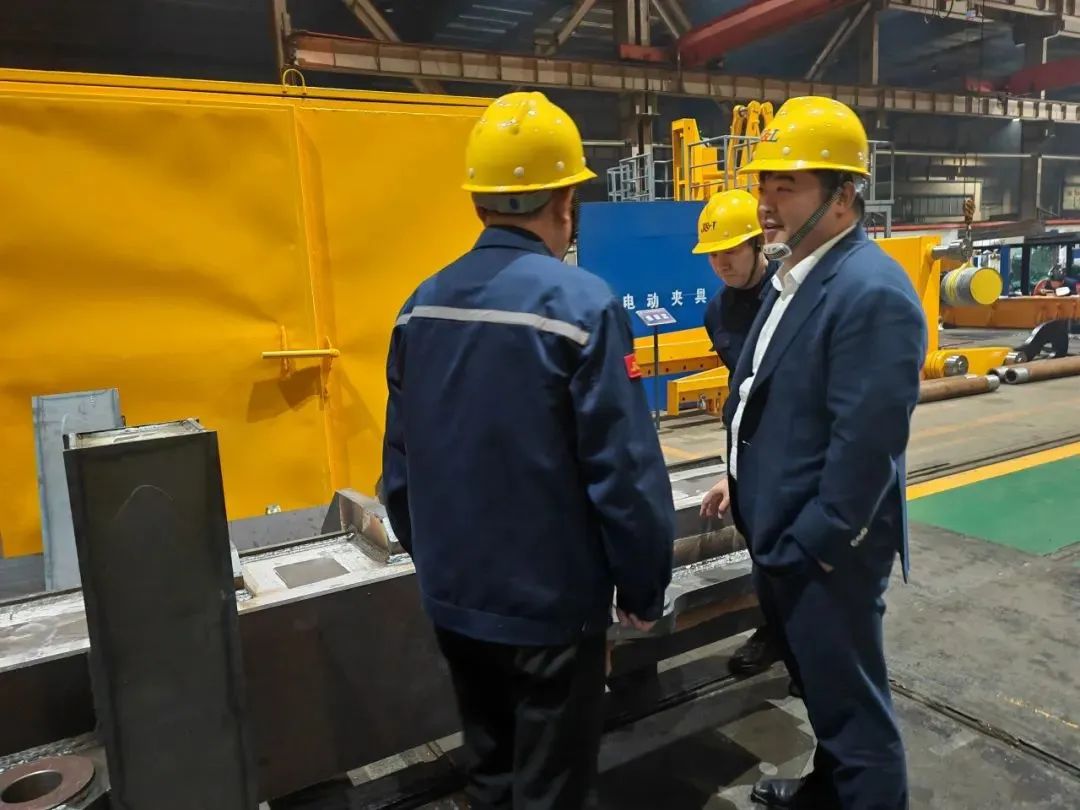 楊超先后來到鋼絲繩制造廠、鋼拉桿制造廠、冶金結構件制造廠、鍛造索具制造廠,深入了解各制造廠現場管理人員安排、場地施工安全標準、生產進度等情況。現場管理人員針對自己所負責的相關工作向楊超逐一匯報,并就施工中所面臨的難點疑問,提出了具體的建議和意見。