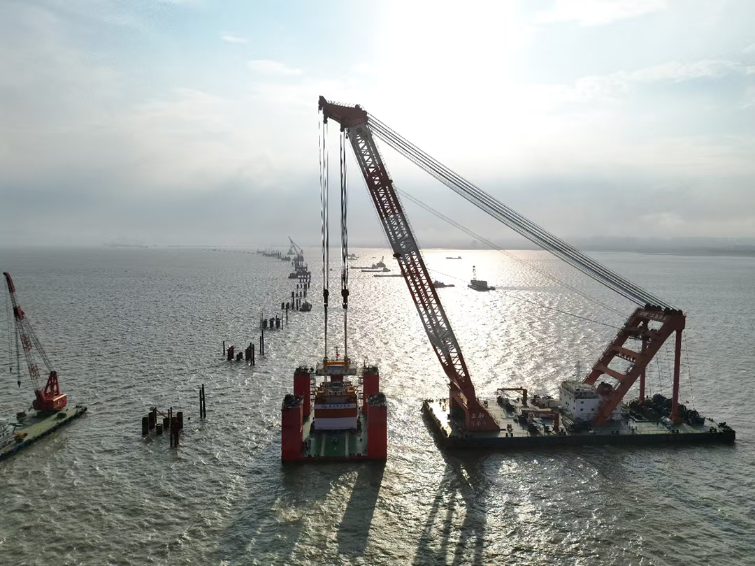 首個六邊形預制墩臺成功完成海上吊裝