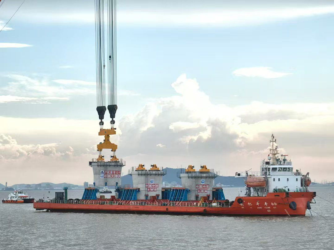 在“盈尚1”起重船的吊裝下