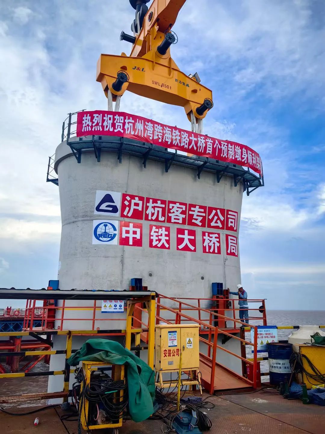 世界首次!巨力索具助力杭州灣跨海鐵路橋首座預(yù)制墩身成功架設(shè)