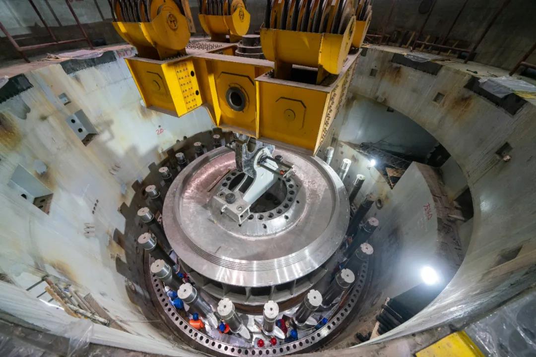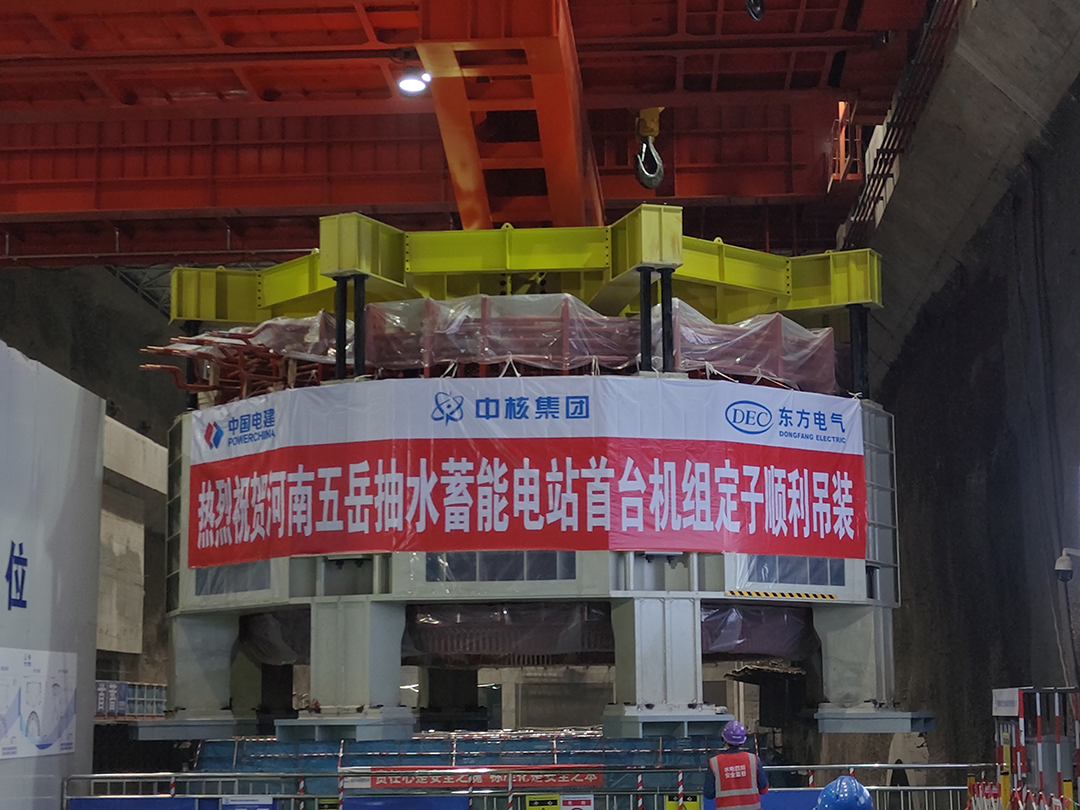 2024年3月27日,中國(guó)水電四局承建的河南五岳抽水蓄能電站首臺(tái)機(jī)組定子吊裝就位,巨力索具制造的350T定子起吊工具全程保障該項(xiàng)目吊裝順利進(jìn)行,巨力索具從項(xiàng)目立項(xiàng)之初就與東方電機(jī)技術(shù)研發(fā)團(tuán)隊(duì)反復(fù)優(yōu)化吊裝方案,確保吊具與定子外形尺寸高度契合,吊裝形式安全可靠。