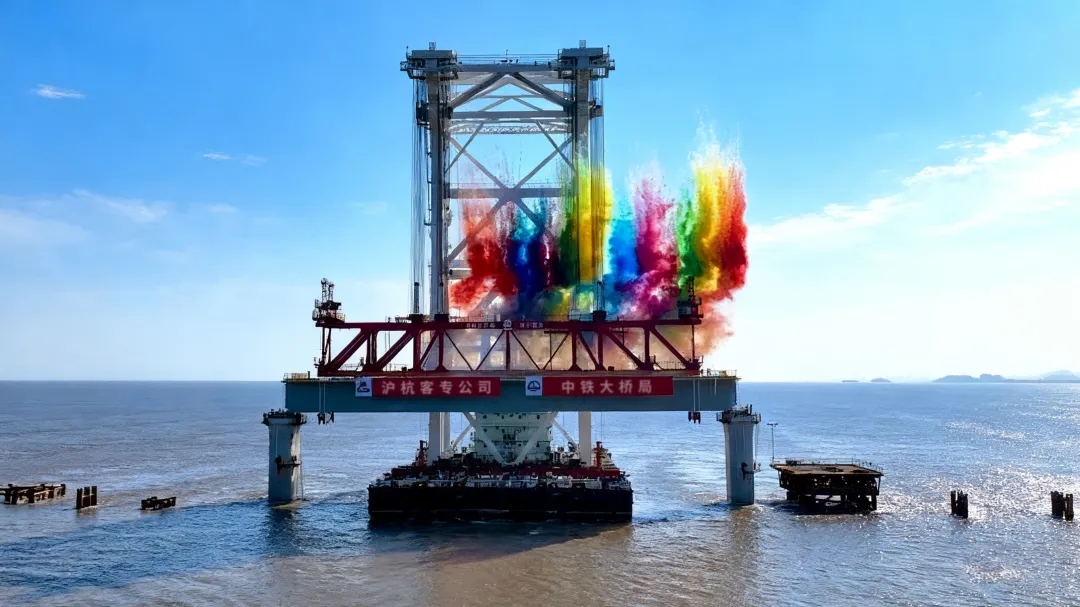杭州灣跨海鐵路大橋全長約29.2公里,設計時速350公里,是新建南通至寧波高速鐵路的控制性工程。建成后,將成為我國“八縱八橫”高鐵網沿海通道的重要組成部分,對完善區域路網結構布局,方便沿線人民群眾出行,推進長三角一體化高質量發展具有不可估量的意義。目前,大橋建設正按計劃穩步推進,預計2026年底將完成海中引橋主體工程,2027年底建成通車。