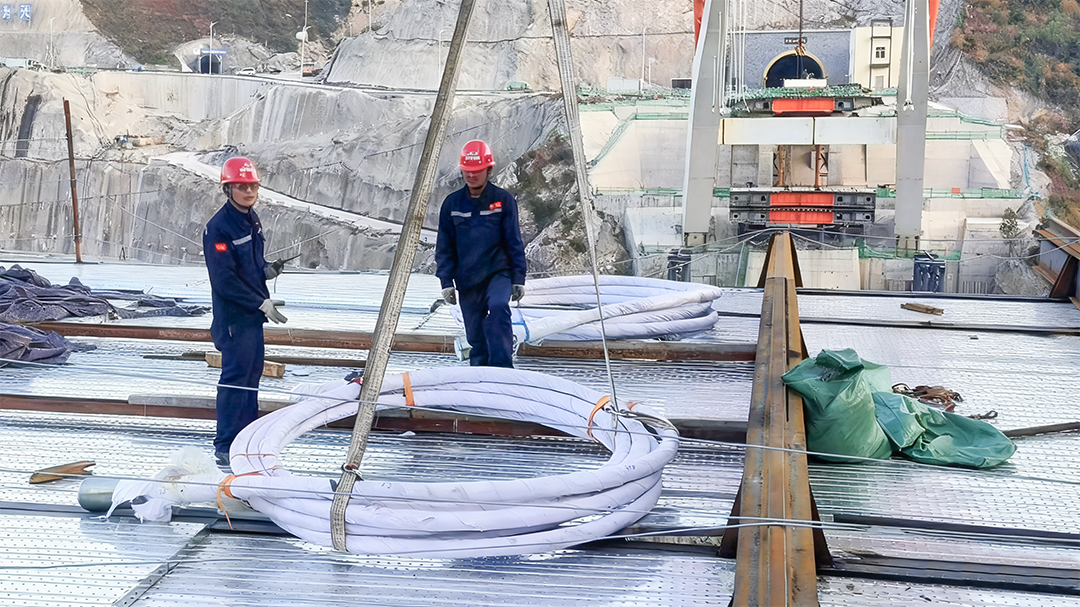 在吊索安裝環節,巨力索具團隊積極優化作業流程,對吊索安裝張拉后的穩定進行觀測,確保安裝進度與質量,為大橋的順利通車提供了關鍵保障。巨力索具團隊也因出色的現場表現,被項目部授予“優秀施工班組”的榮譽稱號。