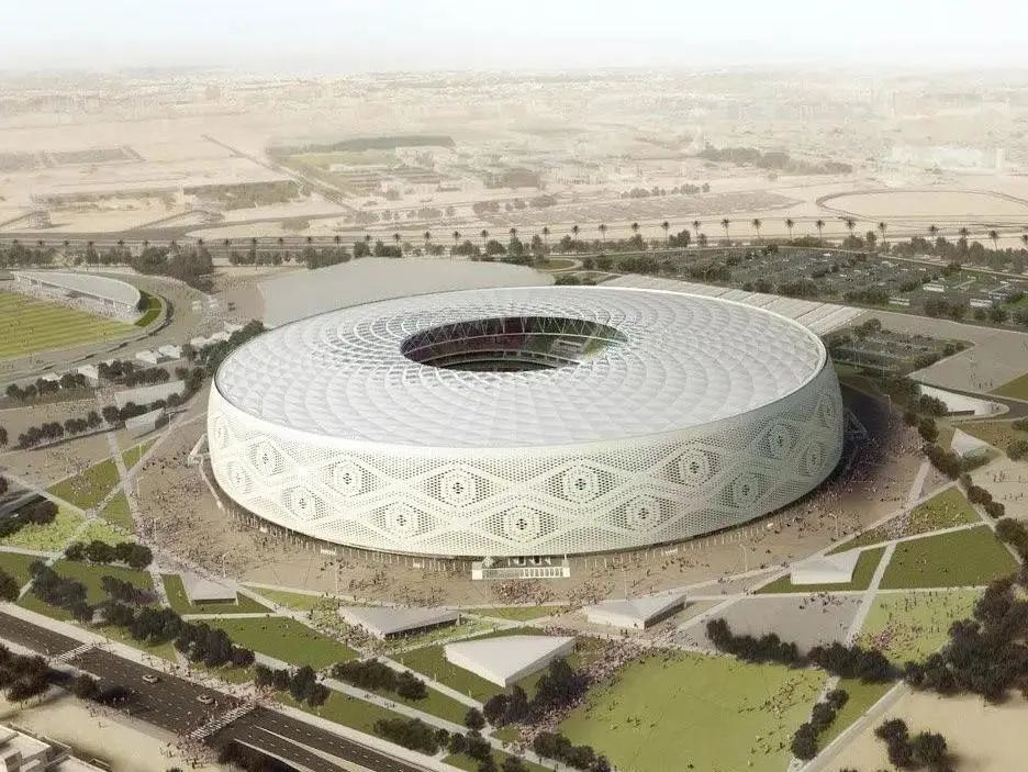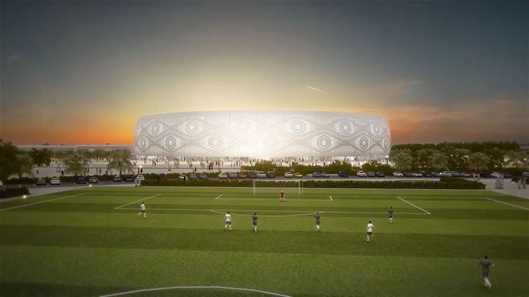 該球場是由卡塔爾建筑師Ibrahim M. Jaidah設計的,其設計靈感源自于阿拉伯男子佩戴的白色針織帽(Gahfiya),獨特的鏤空編織圖案極具阿拉伯特色,將阿拉伯當地風情展現得淋漓盡致。