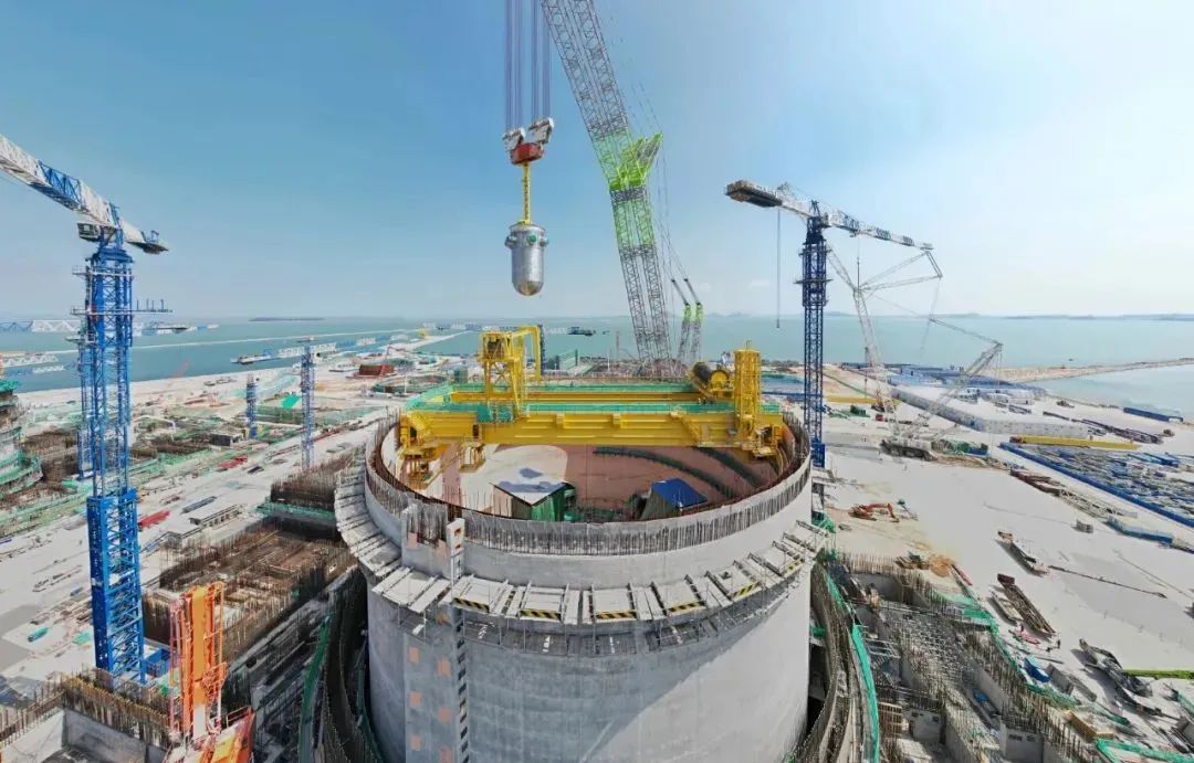 目前反應堆壓力容器、蒸汽發生器等核島主設備已全部開頂引入就位,按計劃擬于10月底實現內穹頂吊裝。
