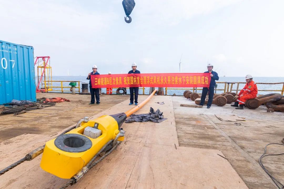 5月25日,由巨力索具自主研發生產的國內首套海上漂浮式風機永久系泊索順利通過驗收。該套系泊索應用在全球首臺抗臺風型浮式海上風機,應用此漂浮式風機的三峽陽江沙扒項目將成為首個國家級漂浮式示范項目,也將為后續我國深遠海海上風電項目的開發以及海上風電與海洋牧場、海水制氫等產業的融合發展奠定堅實基礎。