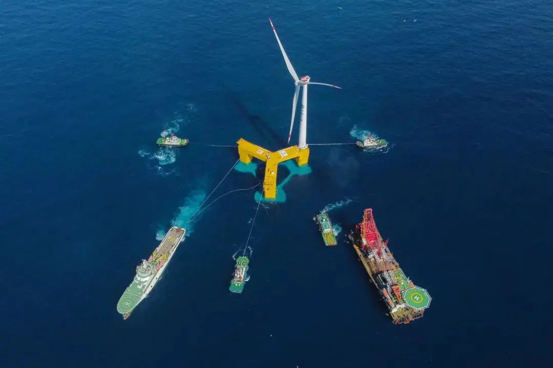 近日,從廣東茂名港出發的中國首臺浮式風電機組于7月11日成功抵達陽江海上風電場并開始進行系泊索安裝。