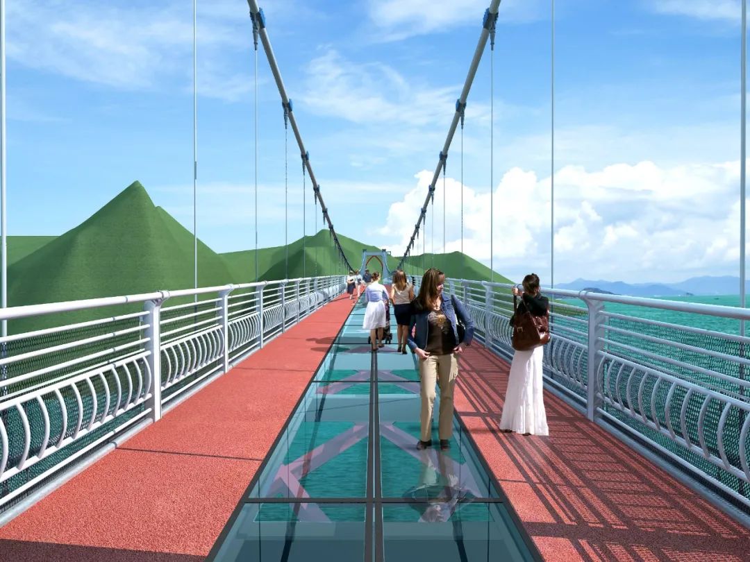 青海坎布拉景區人行懸索橋全程跨度110米,橋梁寬6米,人行道凈寬5米。大橋位于李家峽水庫入口附近,橋梁連接水庫入口兩岸,兩端連接旅游人行棧道,坎布拉丹霞地貌多以奇峰、峭壁為其主要地貌特征,生態環境脆弱,大橋兩岸地勢陡峭,工程地質條件極為復雜,對產品要求極高。