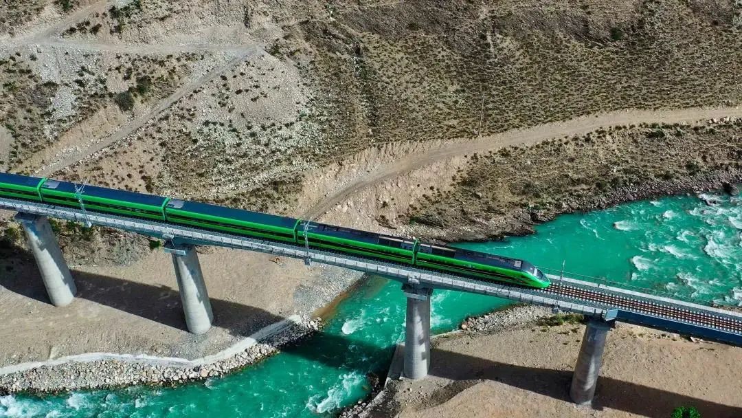 拉林鐵路正線全長435.48公里,設計時速160公里,是西藏首條電氣化鐵路。藏木雅魯藏布江雙線特大橋全長525.1米,主拱跨徑430米,橋址處海拔3350米,是目前世界上海拔最高、跨度最大的鐵路鋼管混凝土拱橋,也是雅魯藏布江上首座“一跨過江”的鐵路橋梁。
